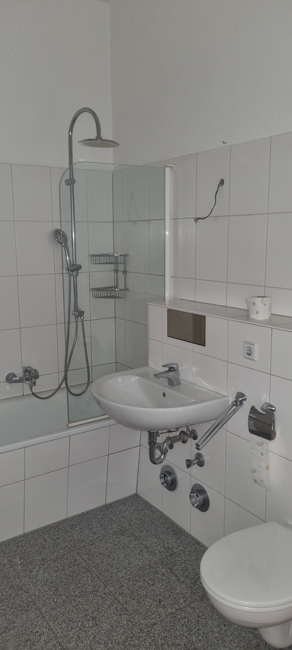 Geräumiges Badezimmer mit Badewanne und Dusche