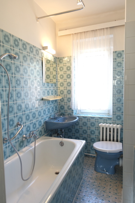 Sanitärräume im Souterrain und DG alte Wannenbäder, Wände mit Dekor- bzw. Mosaikfliesen), ein geflieste
