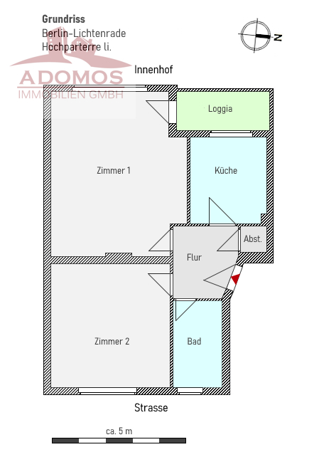 Zum Verkauf steht eine sehr schön geschnittene 2-Zimmer-Eigentumswohnung im beliebten Berliner Stadtteil Lichtenrade. Die Wohnung befindet sich im Hochparterre eines gepflegten, viergeschossigen Mehrfamilienhauses aus dem Jahr 1960. Sie verfügt über ca. 51 m² Wohnfläche, die sich auf ein helles Wohnzimmer mit Zugang zu einem großzügigen Balkon, ein ruhiges Schlafzimmer, eine separate Küche sowie ein modernes Duschbad mit Fenster verteilen. Der kompakte, funktionale Grundriss bietet ein angenehmes Wohngefühl für Singles, Paare oder Kapitalanleger.